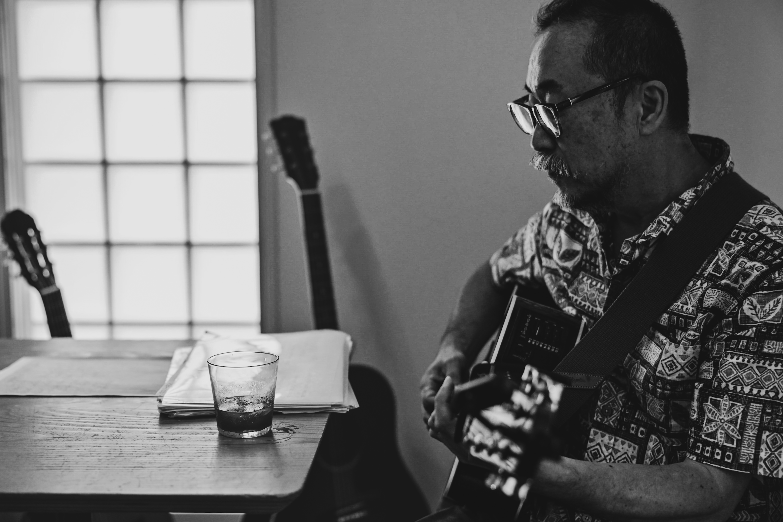 夏の日。自由を選んだ人生。白黒つかないまま。ギターを弾く。